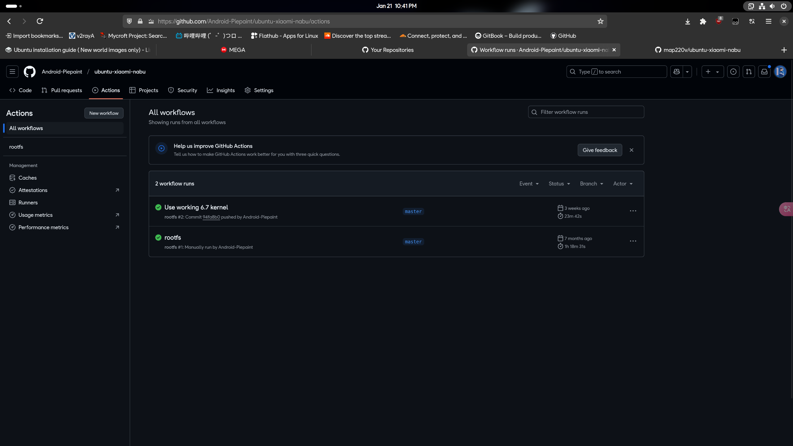 <figure><img src="https://3643206407-files.gitbook.io/~/files/v0/b/gitbook-x-prod.appspot.com/o/spaces%2FHJ5aDuCfW9Ndm4EokAI9%2Fuploads%2Fsk2au0QS1VWVaUyFZPKp%2FScreenshot%20From%202025-01-21%2022-41-48.png?alt=media&#x26;token=4f4913ed-a574-4e10-9391-332d3ac1cf55" alt=""><figcaption><p>The Actions sections showing in my forked repository.</p></figcaption></figure>